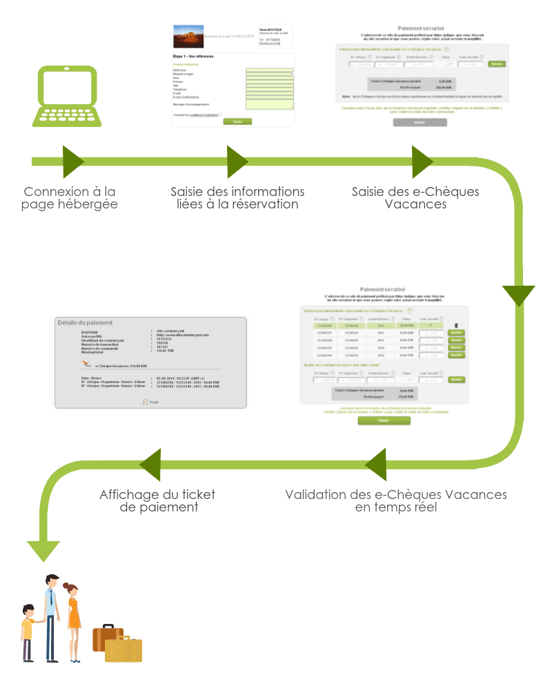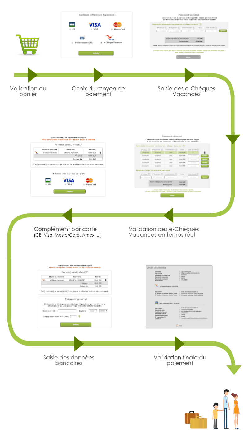 Intégrez les e-Chèques Vacances comme moyen de paiement sur votre site internet et proposez un complément par Carte Bancaire.
